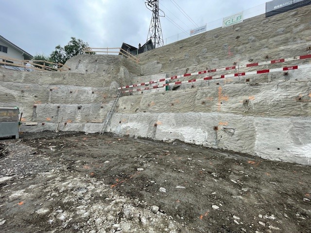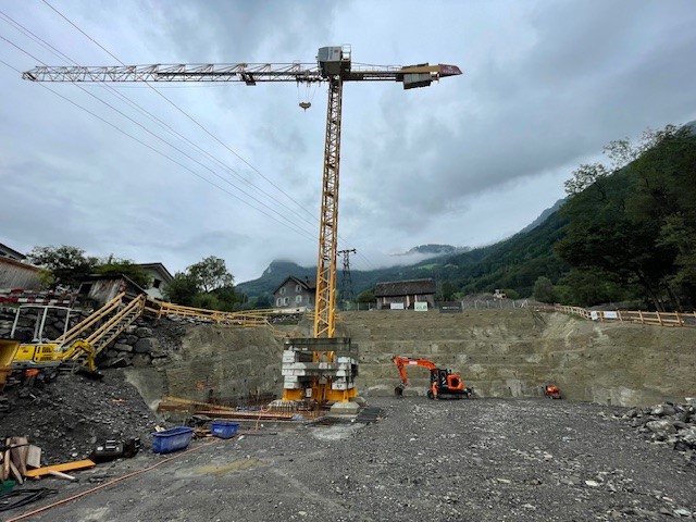 Die Baugrube im Hang unter der Seilbahn Attinghausen-Brüsti ist fertiggestellt, und der Startschuss für die Bodenplatte steht bevor.
