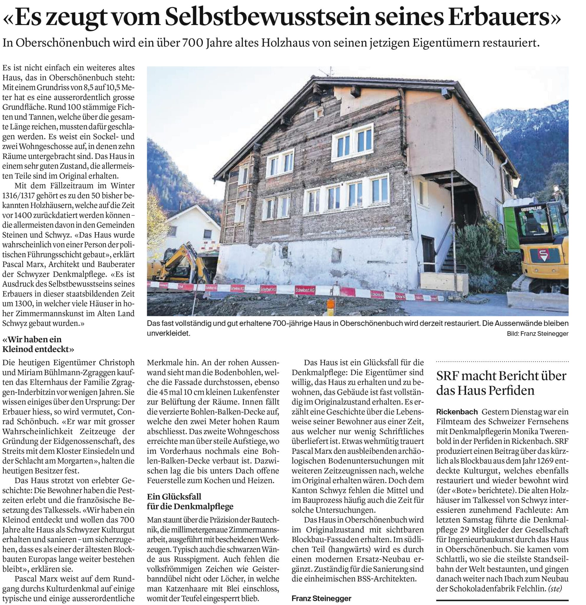 Am 10.11.2021 hat der Bote der Urschweiz über unser Bauprojekt in Oberschönenbuch berichtet.