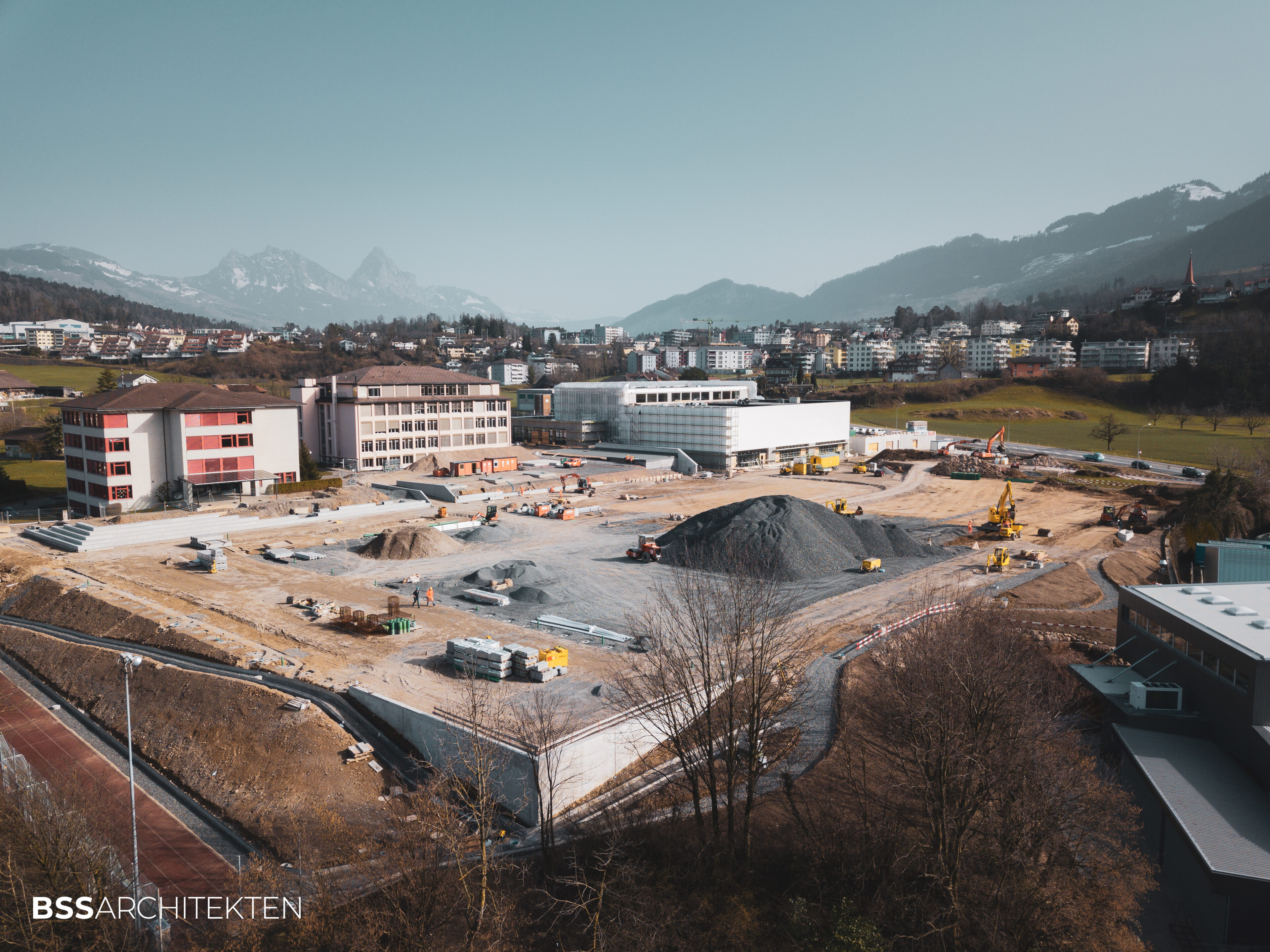 Das Ausmass der Schul- und Sportanlage in Oberarth ist immer mehr erkennbar.