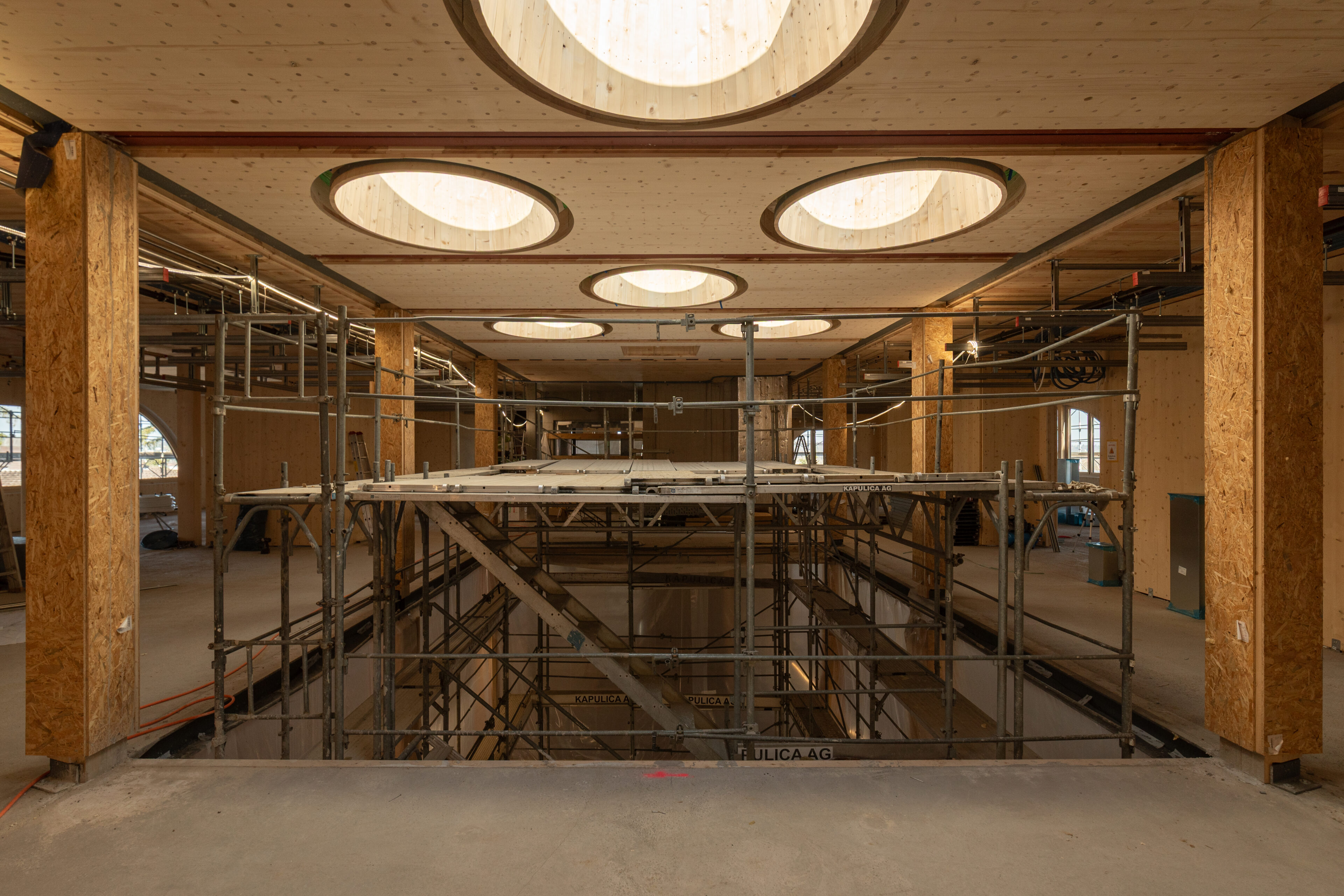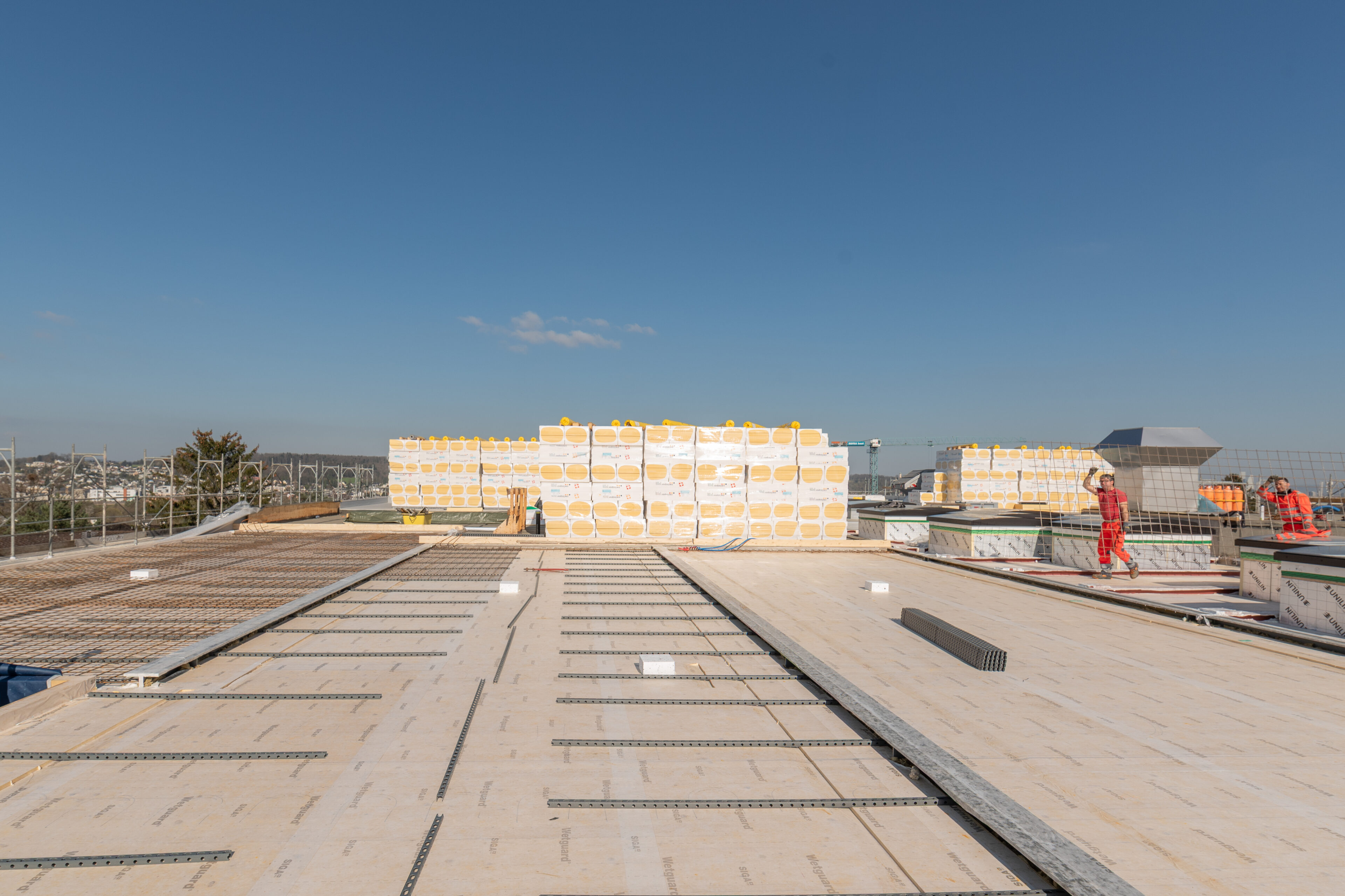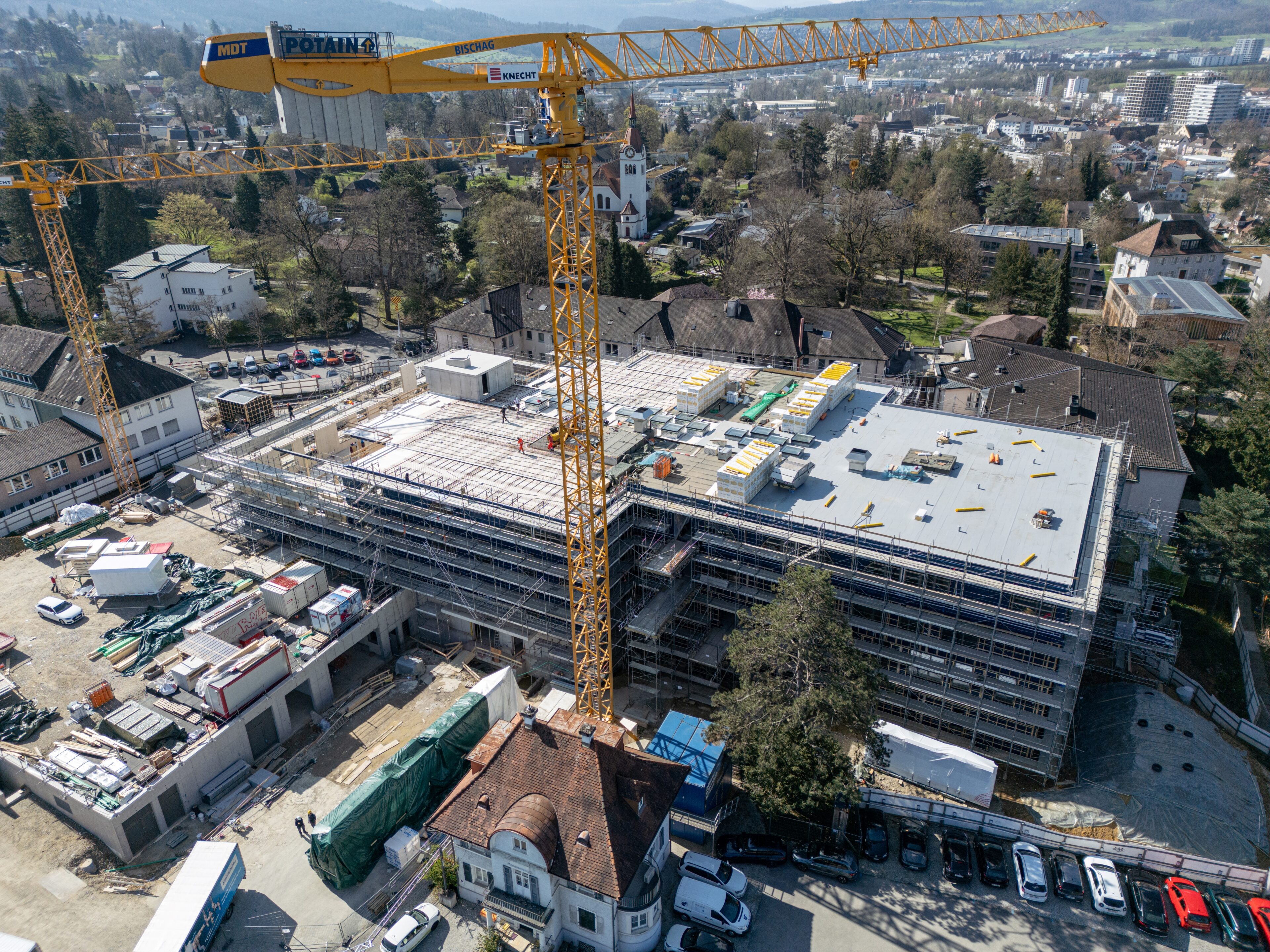 Aktuell sind die Fassadenarbeiten gestartet und parallel dazu die Installationsarbeiten. Gleichzeitig mit dem Erreichen des Rohbauendes kann die Autoeinstellhalle dem Betrieb für Patienten und Besucher übergeben werden. Eindrücklich zeigt sich das einzigartige Bauwerk im Rohbau