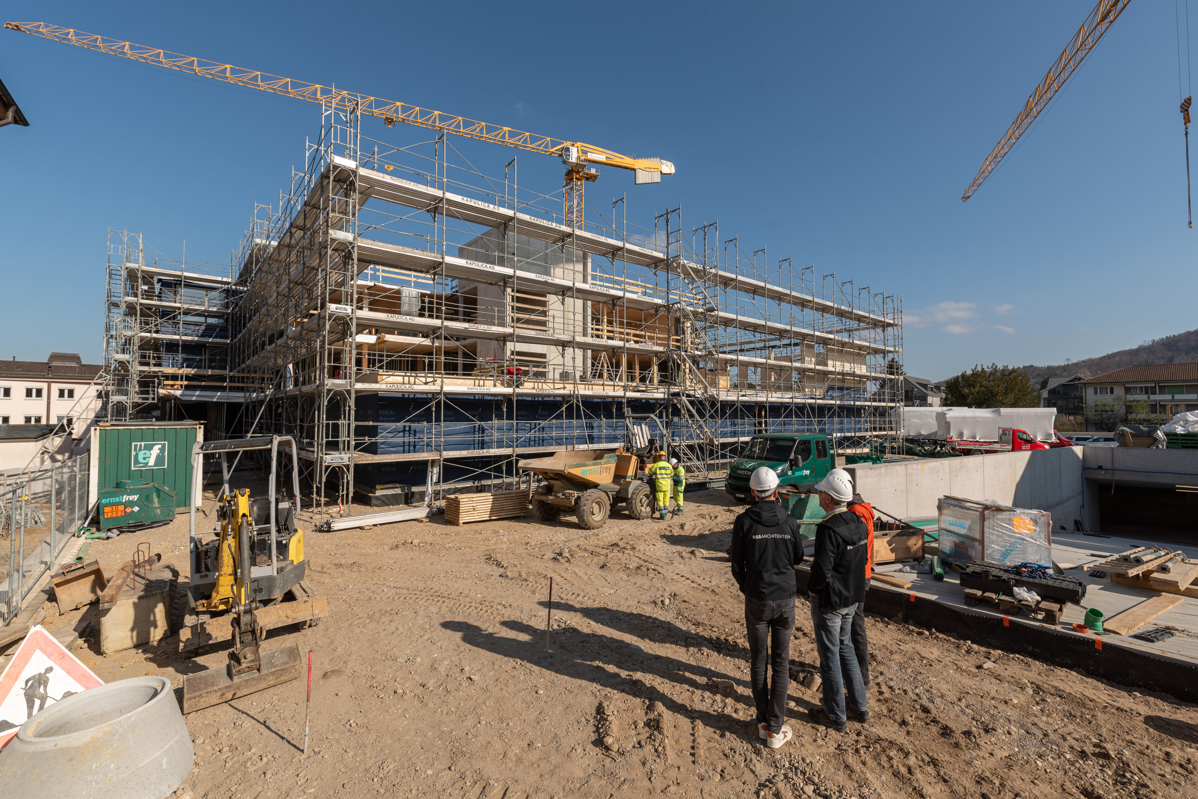 Der Neubau der Klinik Arlesheim macht grosse Fortschritte. Rund 20 Monate nach dem Baubeginn und knapp 1 Jahr nach der Grundsteinlegung nähert sich ein weiterer Meilenstein: Die Fertigstellung der Holzbau-Aufrichte wird demnächst erreicht.