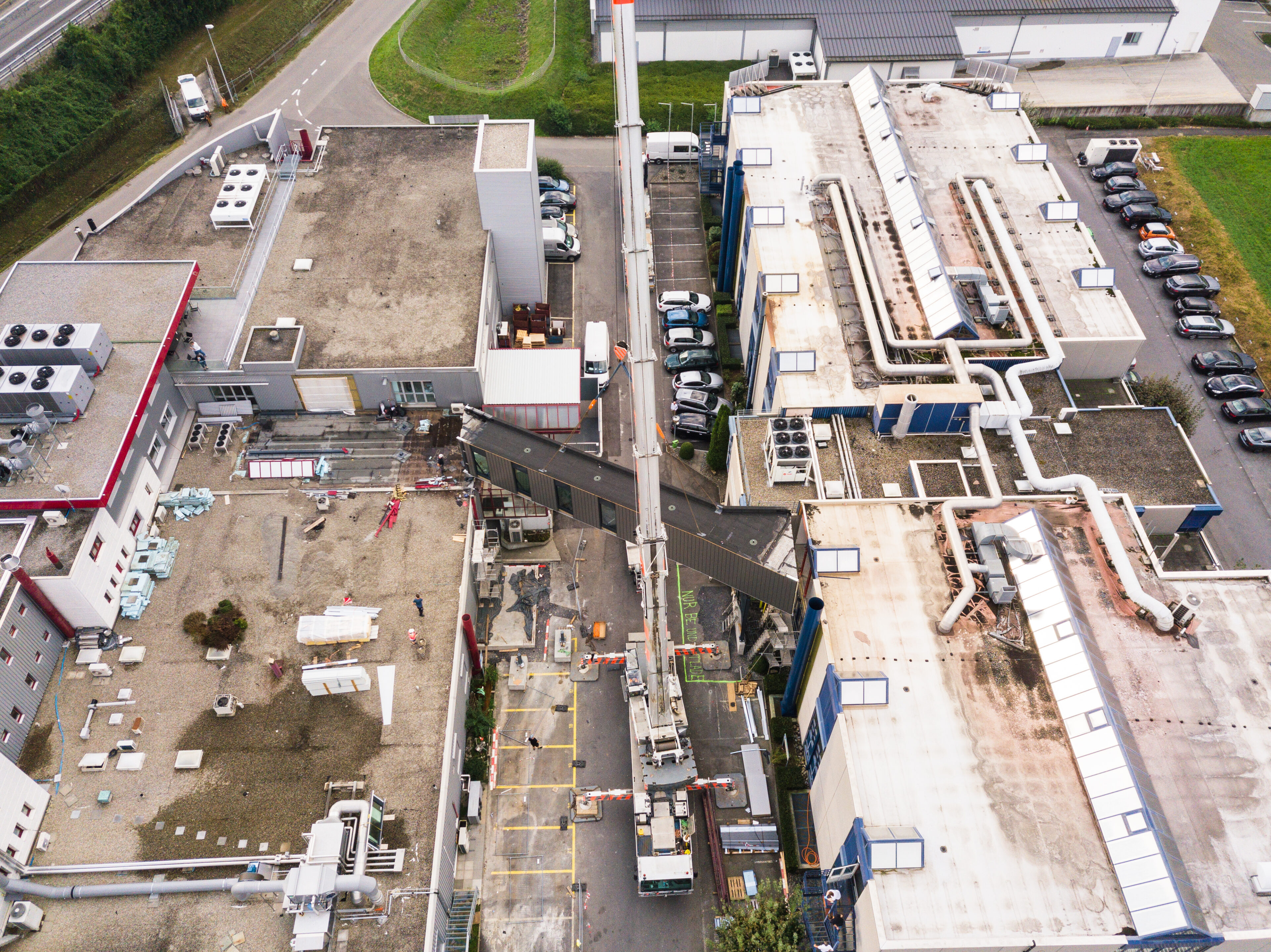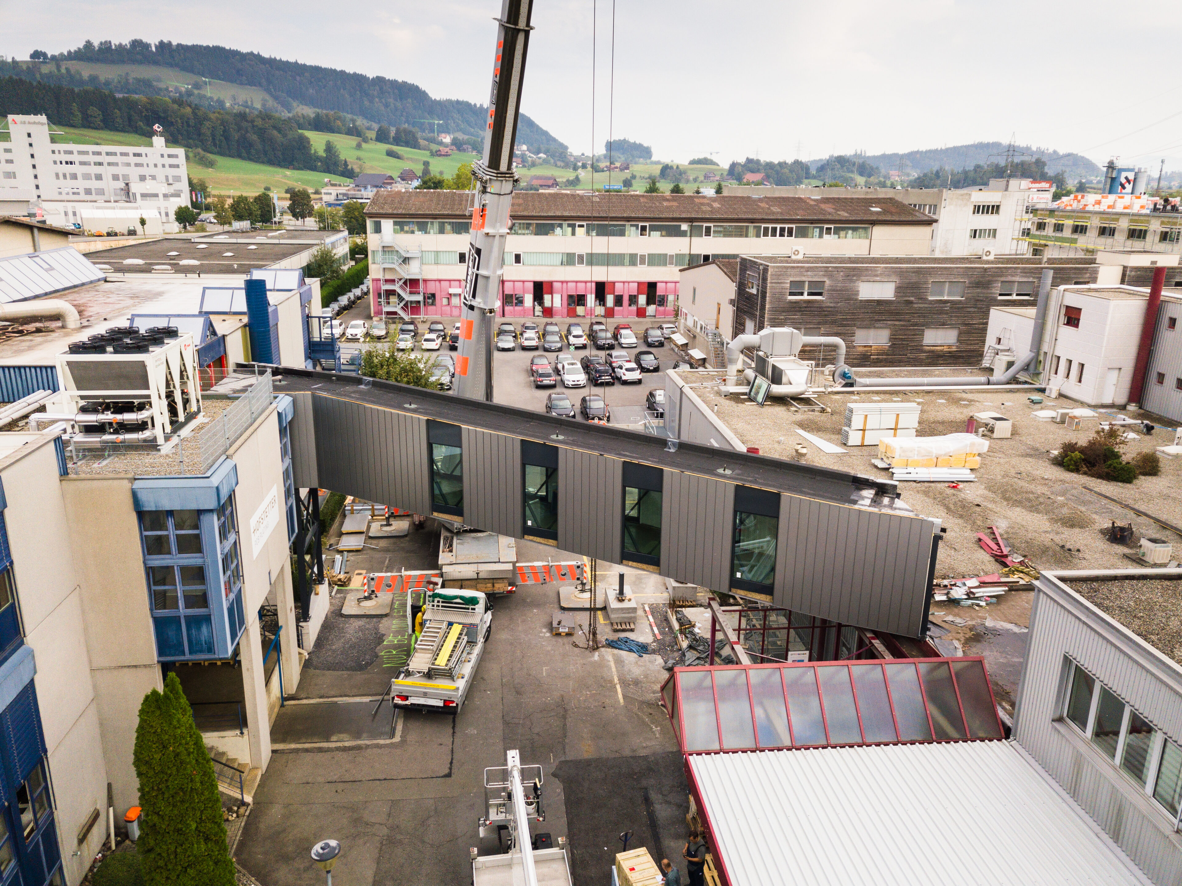 Am Mittwoch 16. September 2020 wurde bei der GS Swiss PCB AG in Küssnacht eine Passerelle zwischen zwei Firmen angebracht.
