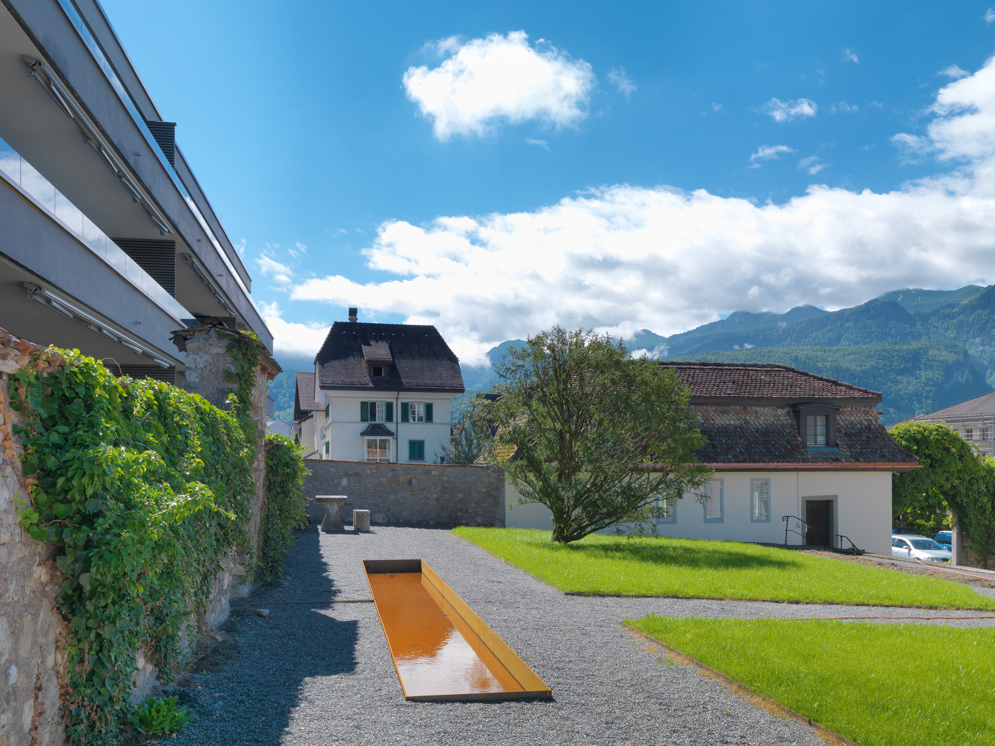 Das Äussere des Hauses wurde belassen, neu gestrichen, die fehlende Dachrinne ergänzt und die Fensterläden durchrahmen lose Vorfenster ersetzt.