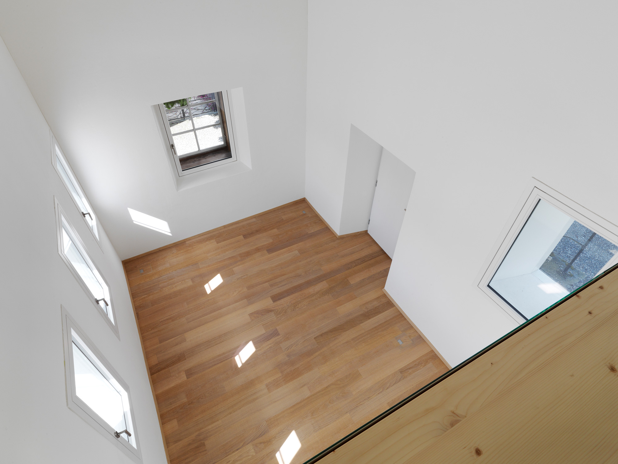 Die Entfernung des alten Holzbodens auf der Galerie hat einen schönen, gut proportionierten Innen-Raum zum Vorschein gebracht, der die Ausgangslage für die Neukonzeption darstellt.