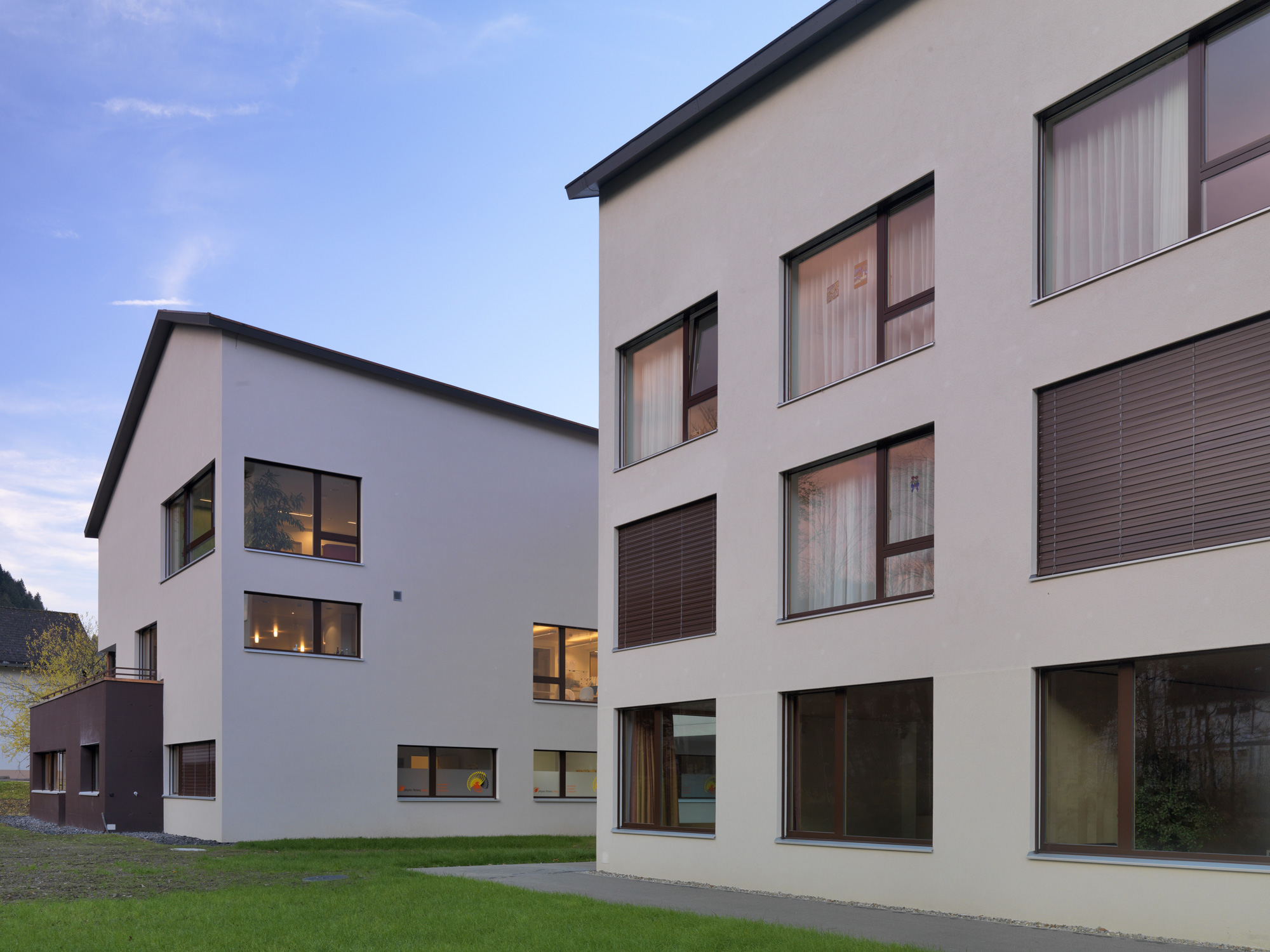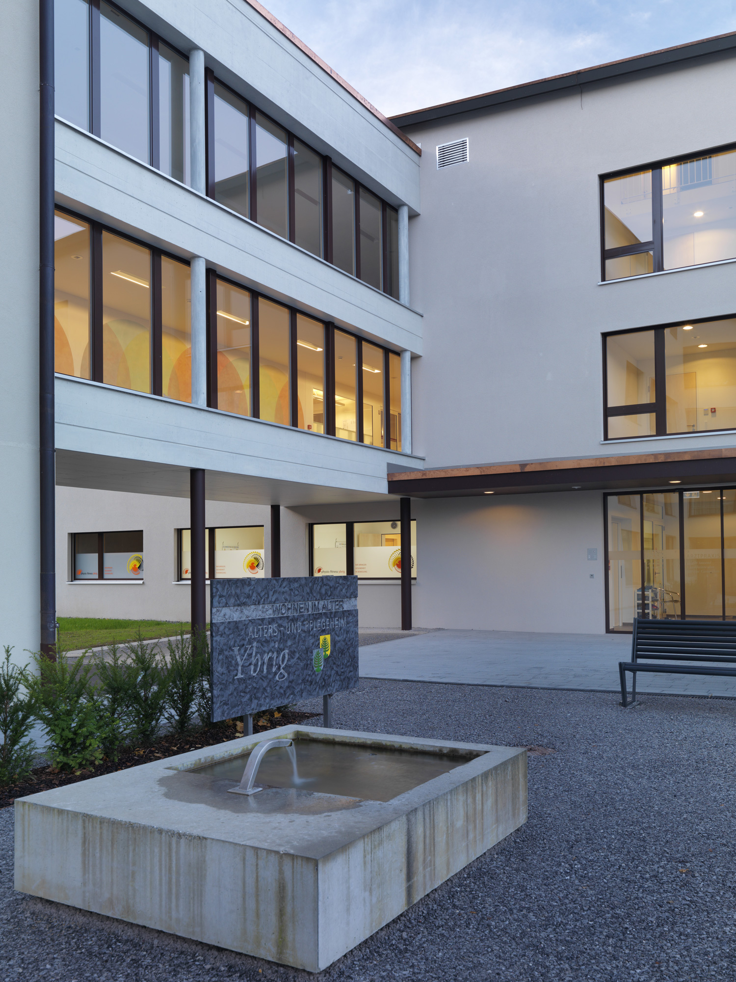 2005 wurde der Neubau des Alters- und Pflegeheims Ybrig eröffnet. Bereits 2008 wurde durch die Berechnung des Kantons Schwyz in Bezug auf die Anzahl Pflegeplätze eine Erweiterung um 14 Pflegeplätze notwendig. Zusammen mit den Pflegezimmern wurde auch eine Physiotherapie mit 250m2 und eine Arztpraxis mit 200m2 erstellt.Die zwei Geschosse sind so angelegt, dass sie flexibel auch als Demenzabteilung benutzt werden können. Der Erweiterungsbau schliesst mit einer Passarelle an den Altbau an. Durch die Stellung des Neubaus wurde der Eingangshof neu gestaltet und stark aufgewertet.Der Erweiterungsbau ist in Massivbauweise mit Schrägdachaufbau erstellt.