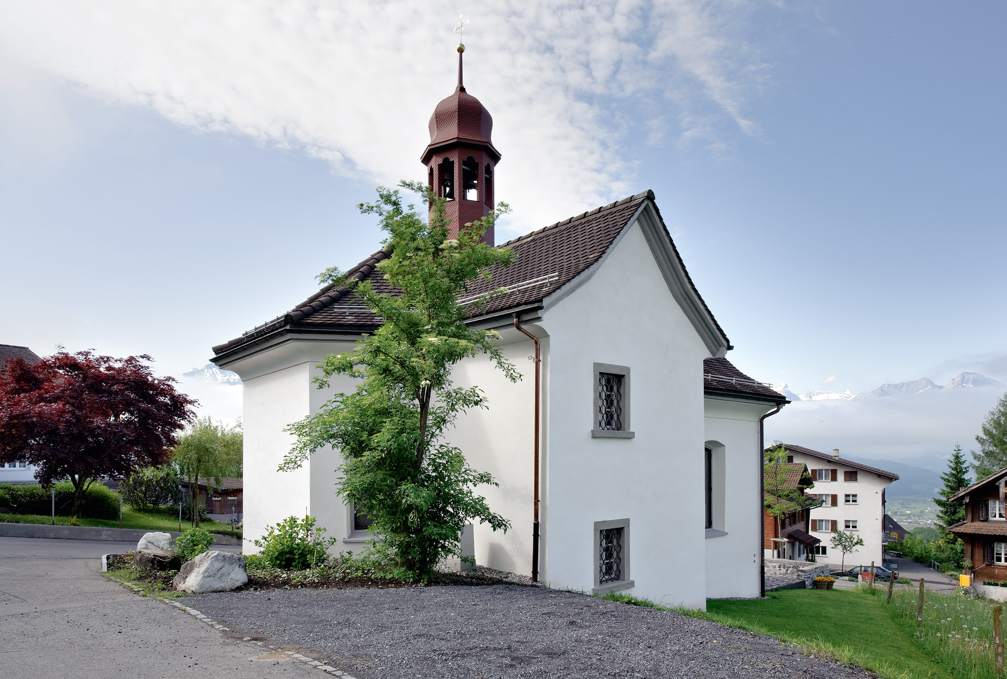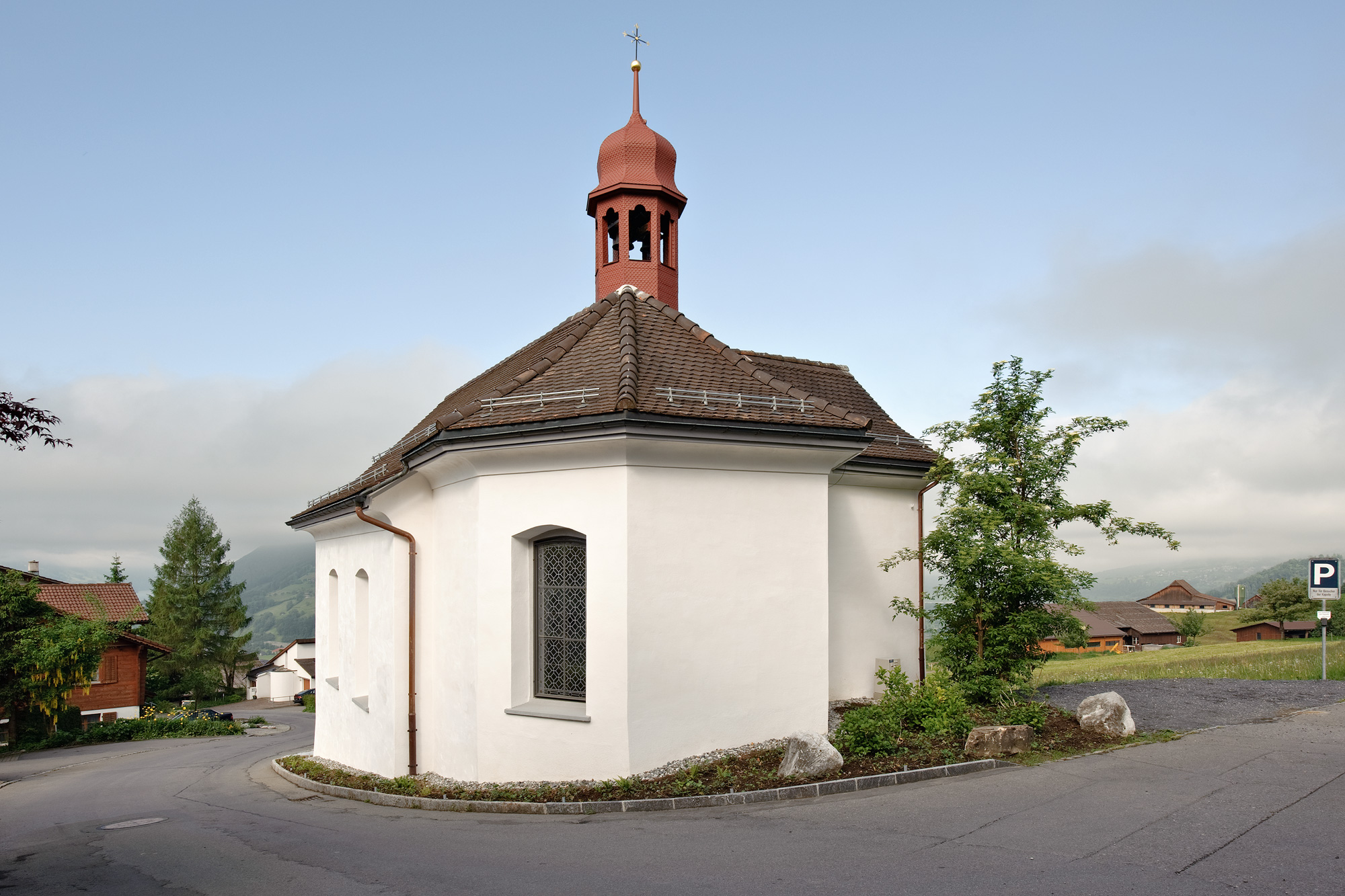 Vorplatz und Kirchlein bilden zusammen mit dem Bauernhaus Auf der Maur das intakte Zentrum der Ortsteiles Ried ob Schwyz.