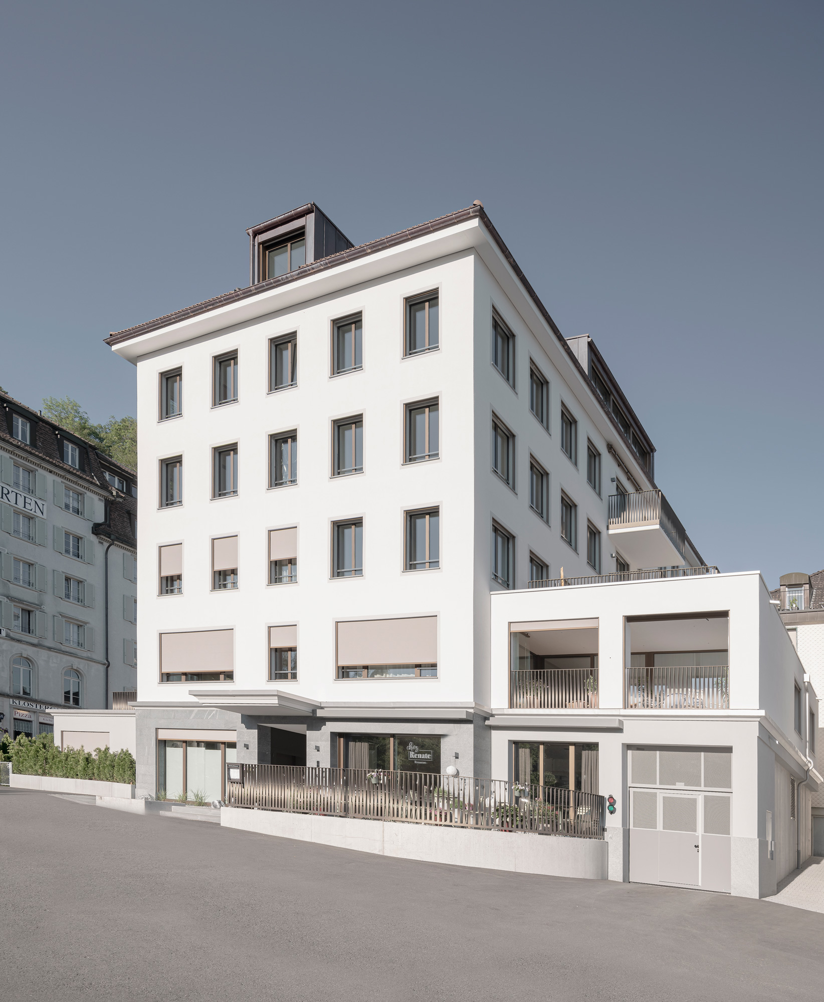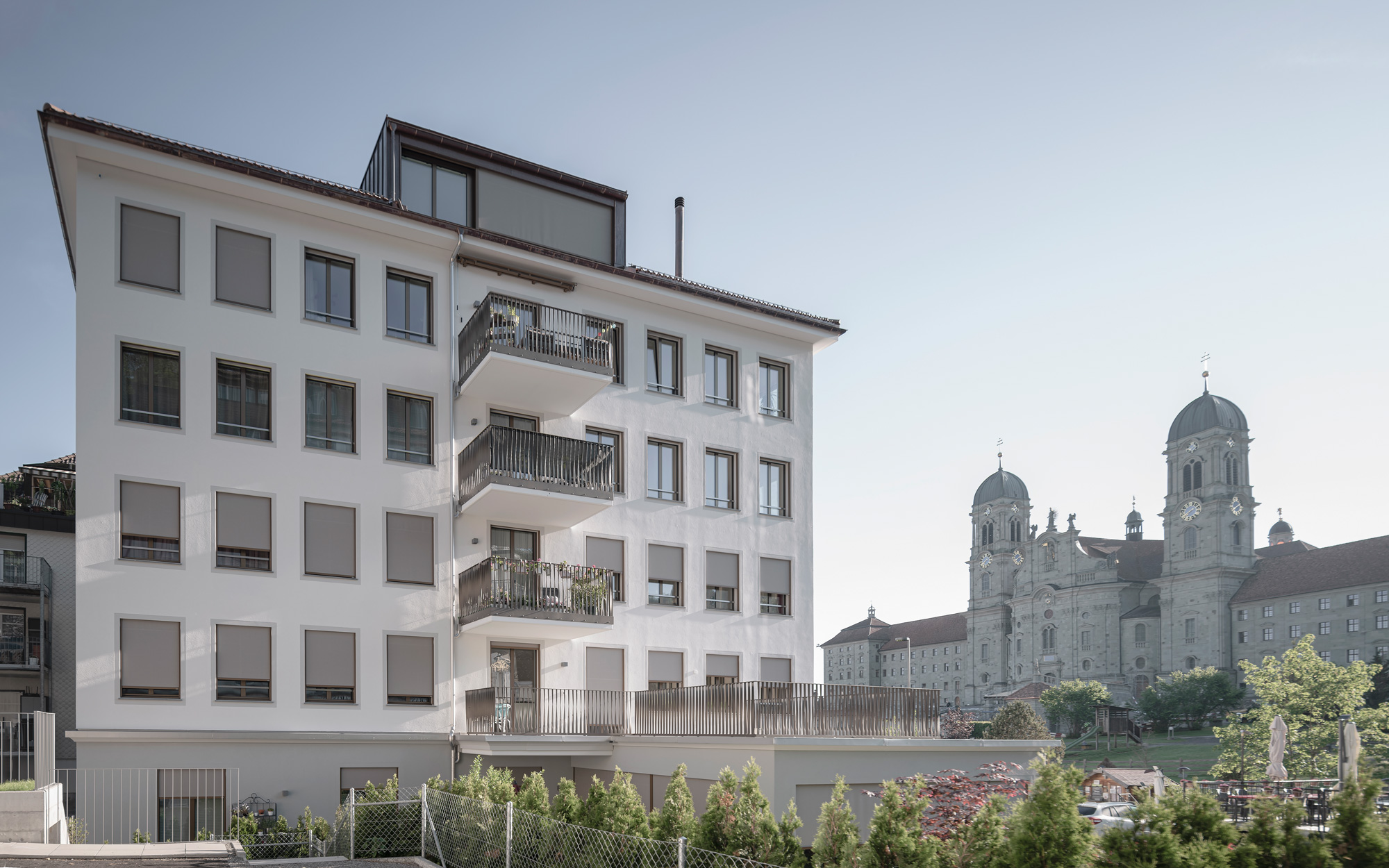 Anstelle des früheren Hotels entsteht ein Wohnhaus mit einem kleinen Gewerbeteil im Parterre. Die erstklassige Lage in der ersten Reihe wird künftig die Bewohner mit einem einmaligen Ausblick auf den Klosterplatz und die imposante Klosteranlage verwöhnen.