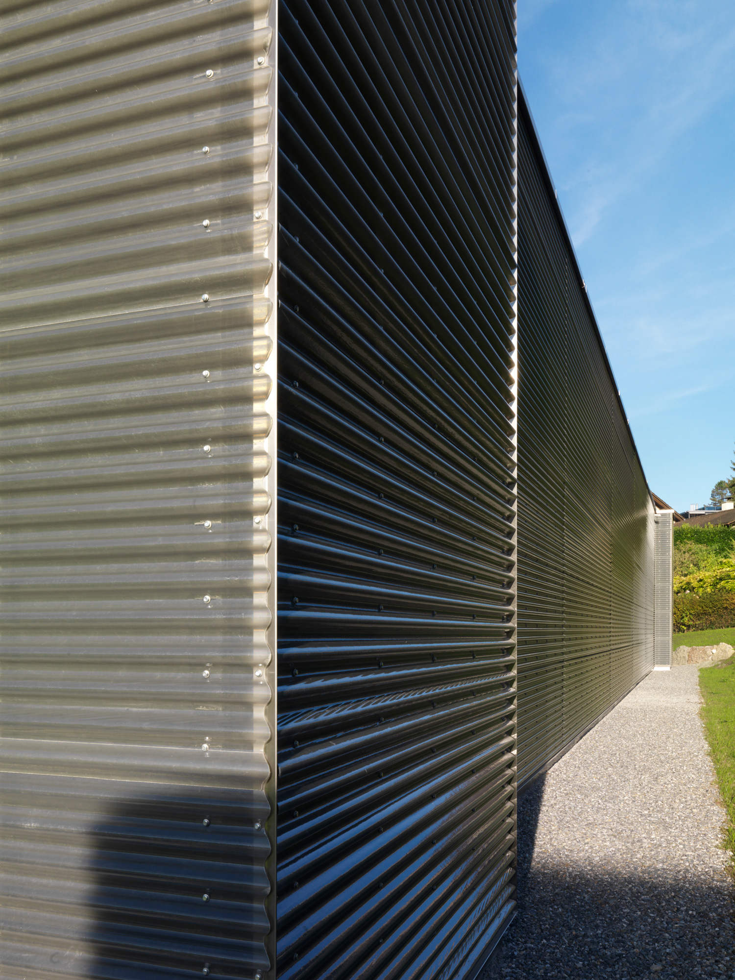 Die Aufgabe bestand in der Integration eines grossen Gebäudevolumens in die Seeuferlinie, mit der hinterliegenden Einfamilienhausbebauung.