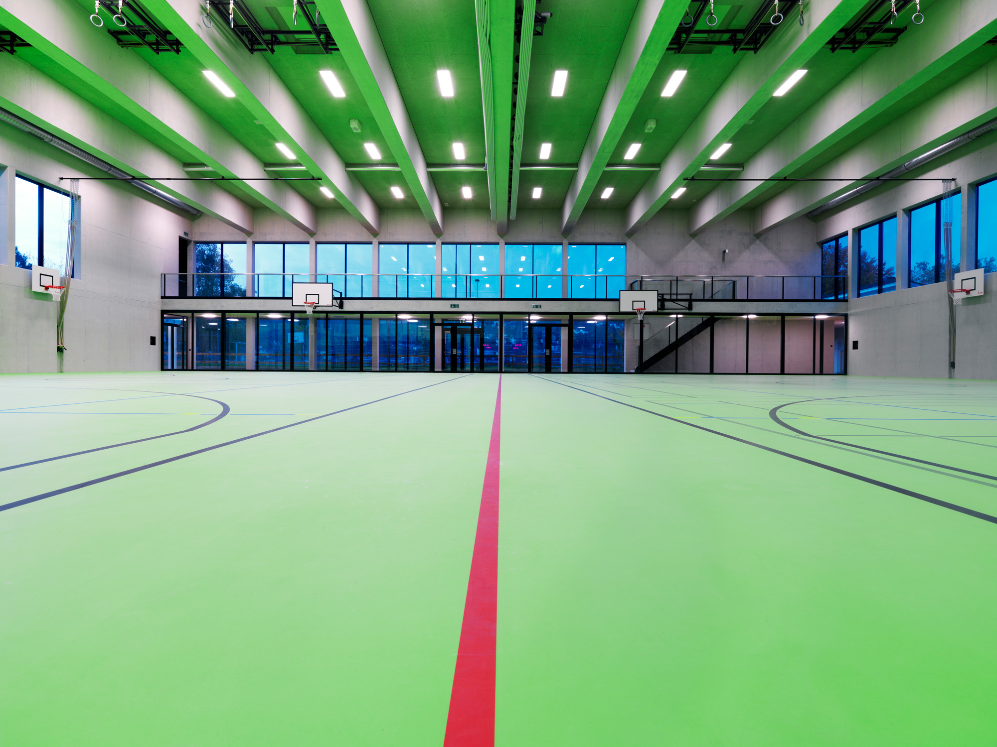 Doppelturnhalle 32 x 28 m mit einer zusätzlichen Garderobeneinheit,