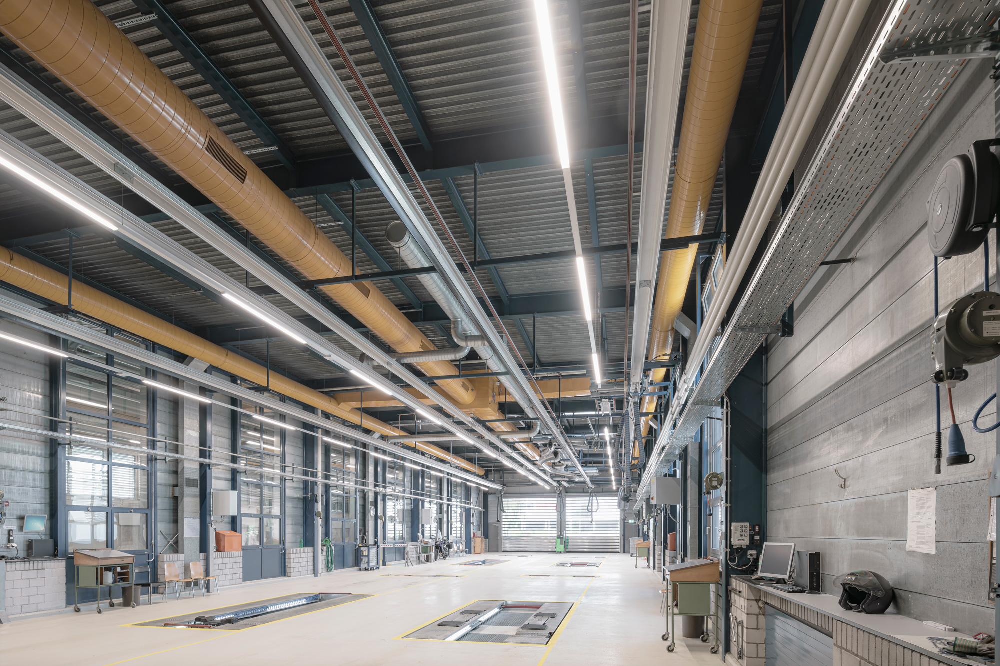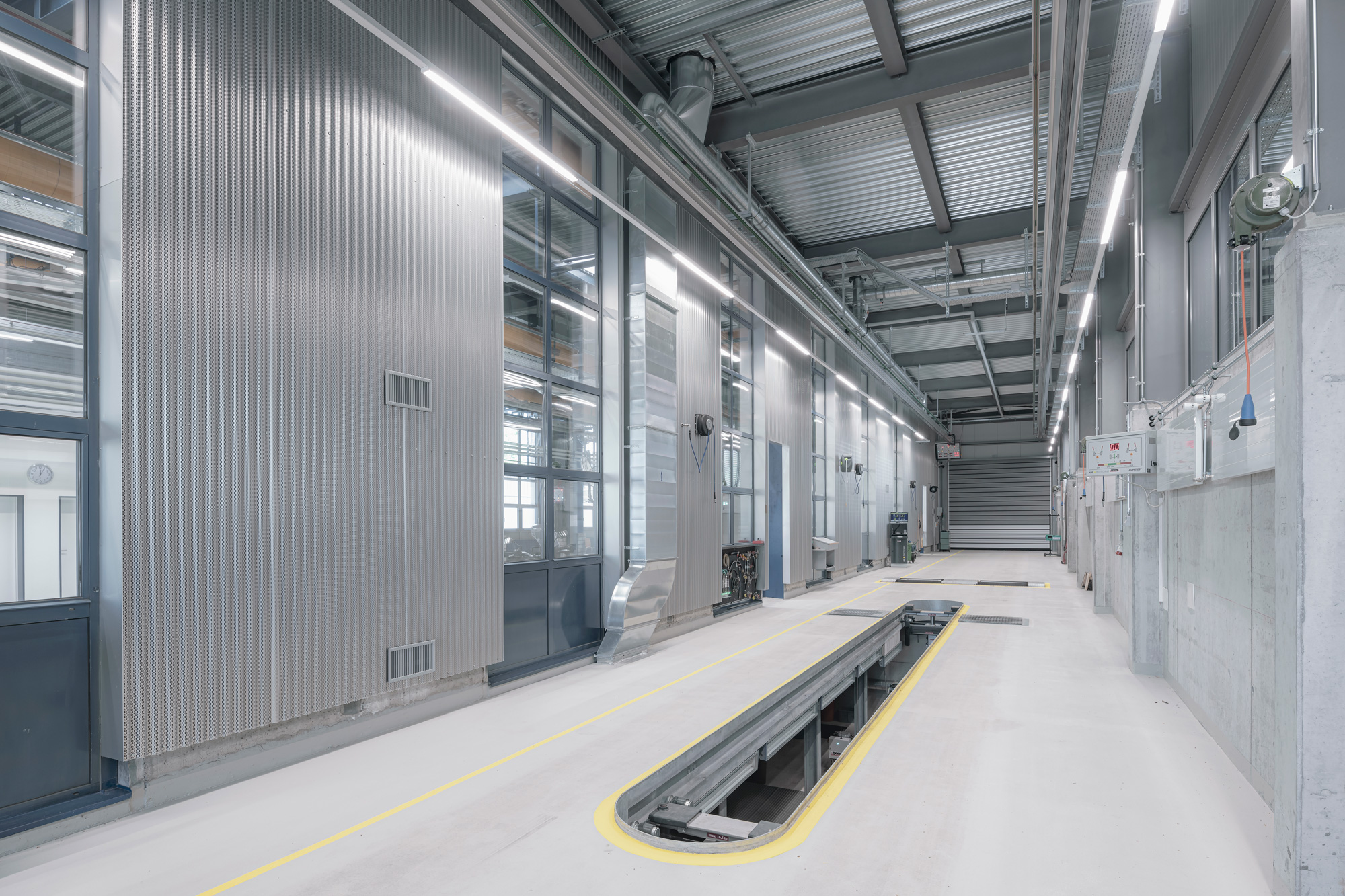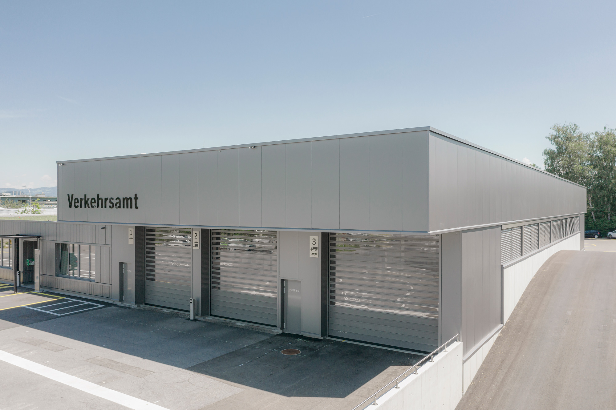 Die räumliche Umgestaltung ermöglicht die Optimierung der Arbeitsabläufe. Zusätzlich wurden der Kundenbereich und der Mitarbeiterbereich konsequent entflechtet und getrennt. Durch die Erweiterung konnten die unbefriedigenden und engen Arbeitsverhältnisse behoben und eine Weiterentwicklung des Verkehrsamtes gewährleistet werden. Durch den Umbau konnten neue Schalterplätze für Kunden, eine Wartezone und einen Besprechungsraum für Fahrlehrer und Schüler, separate Sanitärräume für Kunden, Expertenbüros und Garderoben für Prüfungsexperten geschaffen werden. Die Fahrzeugprüfhalle mit zwei Prüfbahnen wurde um eine zusätzliche Prüfbahn erweitert. Dafür wurde die bestehende Prüfhalle mit einem Anbau vergrössert. Der Anbau der zusätzlichen Prüfbahn an die bestehende Halle bedingte eine Versetzung der aussenliegenden Hügelstrecke. Durch den Ersatz der stark abgenutzten Fassadenelemente, Fenster und Tore können die aktuellen wärmetechnischen Vorgaben eingehalten werden. Zusätzlich konnte das Erscheinungsbild durch die silbernen Fassadenplatten und die dunklen Fenster stark aufgewertet werden.